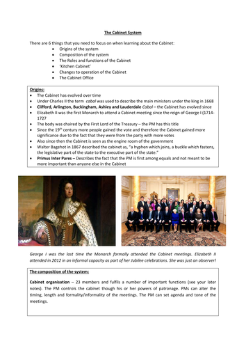Finally, it has a separate head of state and head of government (rodner75). The cabinet system of government originated in great britain. It integrates what would otherwise be a heterogeneous collection of authorities exercising a vast variety of functions. The king does not take part in the meeting of the cabinet. Their main jobs include implementing the policies which have been made by the parliament and to create opportunities for people who work according to the.